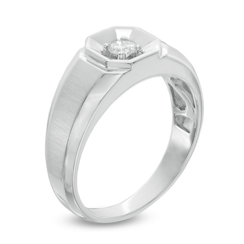 Belle et digne, cette bague en diamant audacieuse est un bon look pour sa tenue de jour ou de soirée. Fabriqué en or blanc 10K, ce bracelet présente un cadre central en forme d’octogone qui présente un éblouissant 1/6 ct. diamant solitaire. Les détails satinés le long de la tige créent de l’intérêt. Polie à un éclat brillant, cette bague confortable vous plaira à coup sûr.